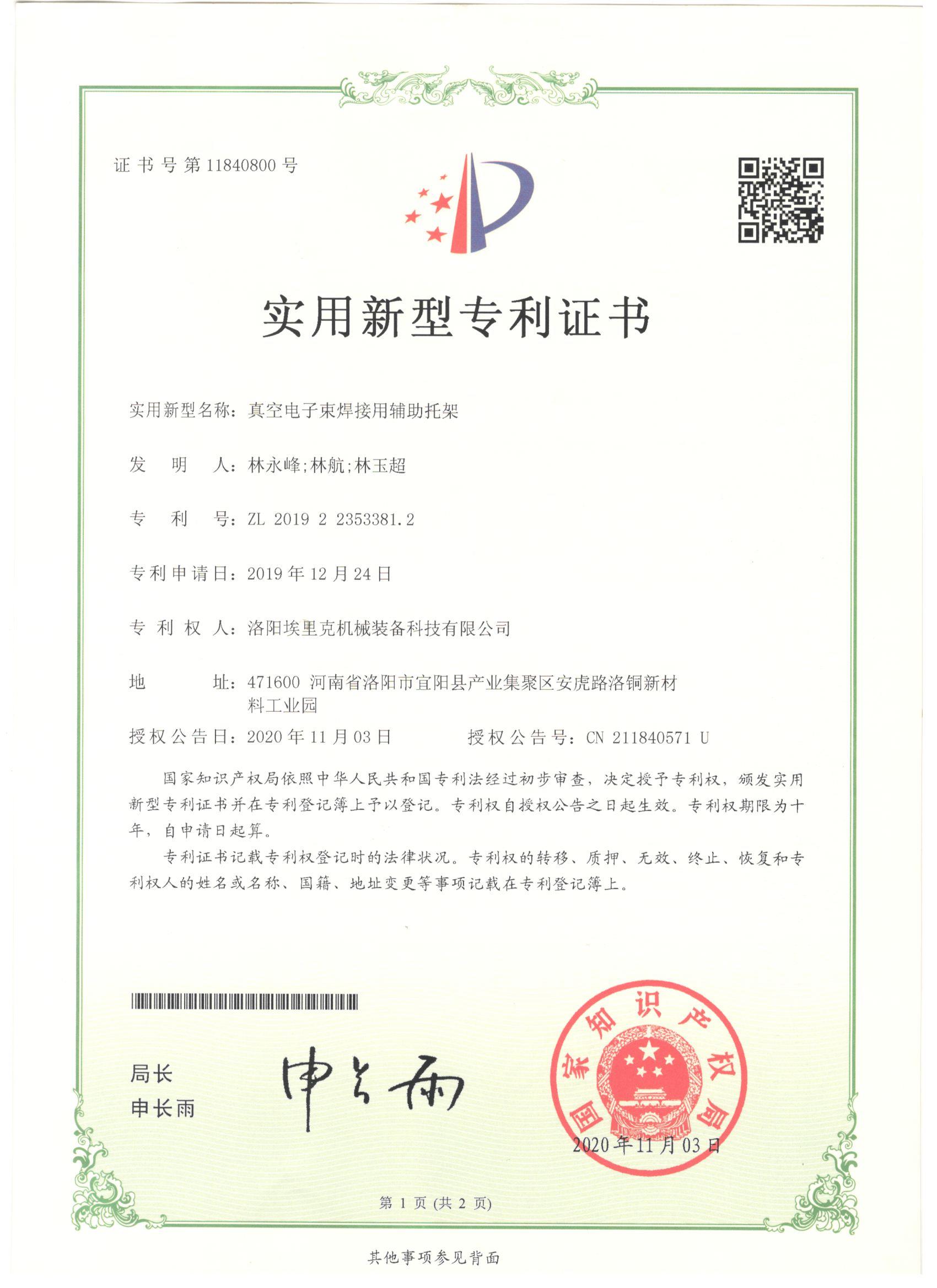 真空電子束焊接用輔助托架專(zhuān)利
