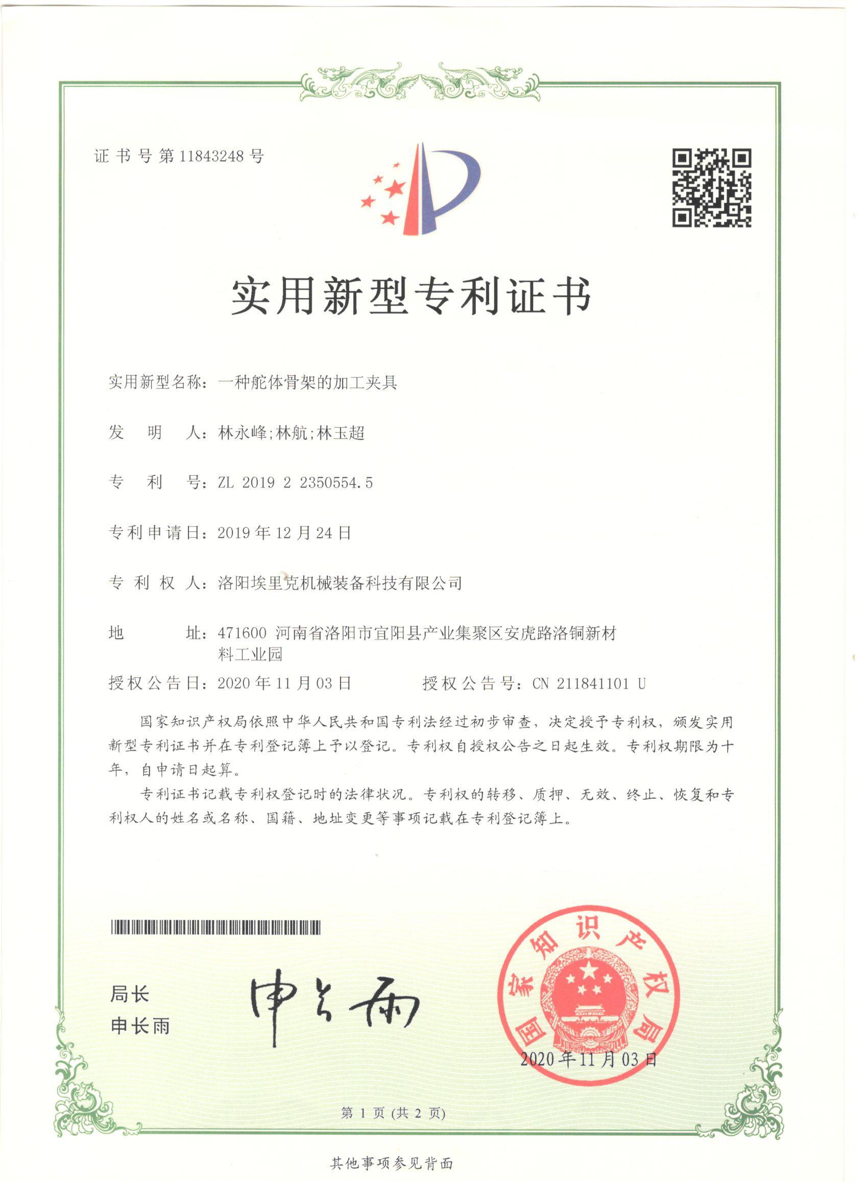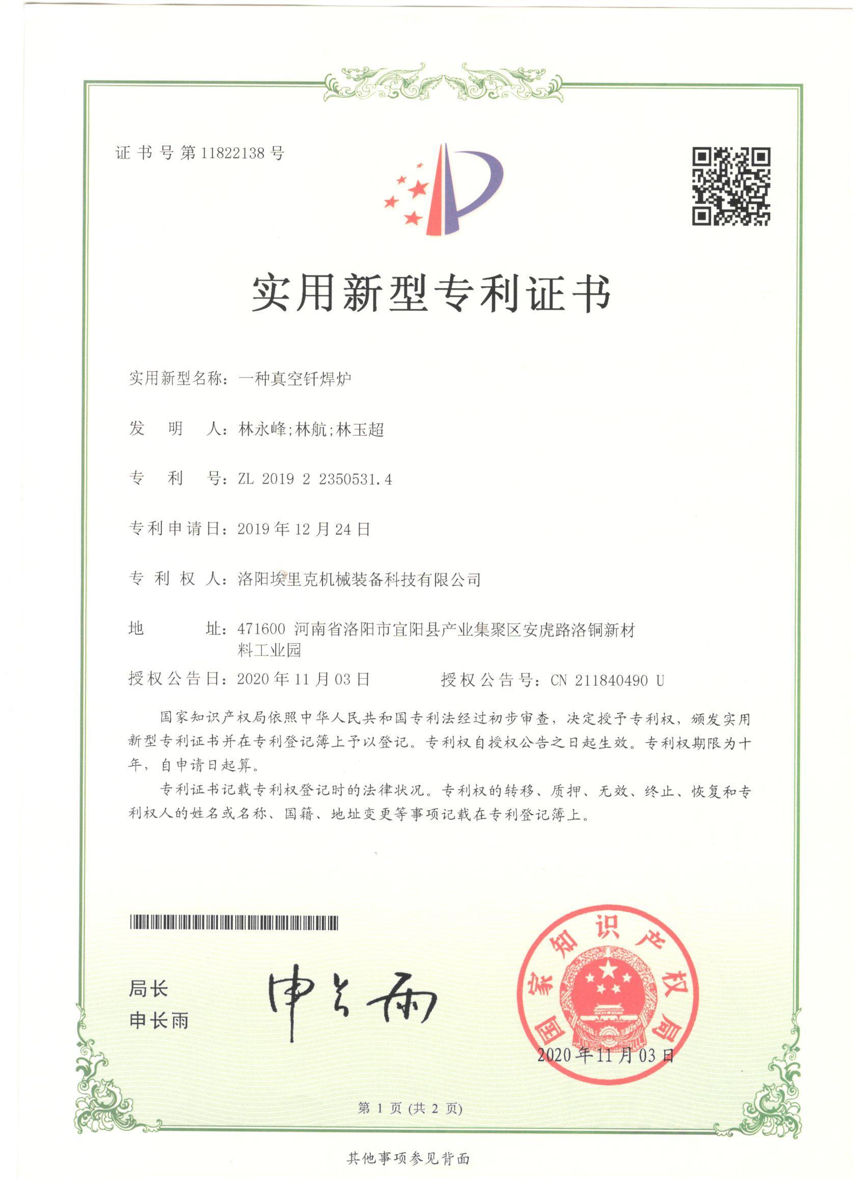 產(chǎn)品專(zhuān)利證書(shū)